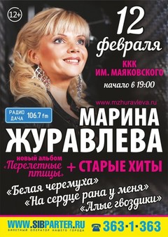 Радио Дача – Новосибирск приглашает на концерт Марины Журавлёвой. 12 февраля в концертном комплексе им. Маяковского при поддержке радиостанции певица представит зрителям новую программу «Перелетные птицы», а также исполнит всеми любимые хиты.